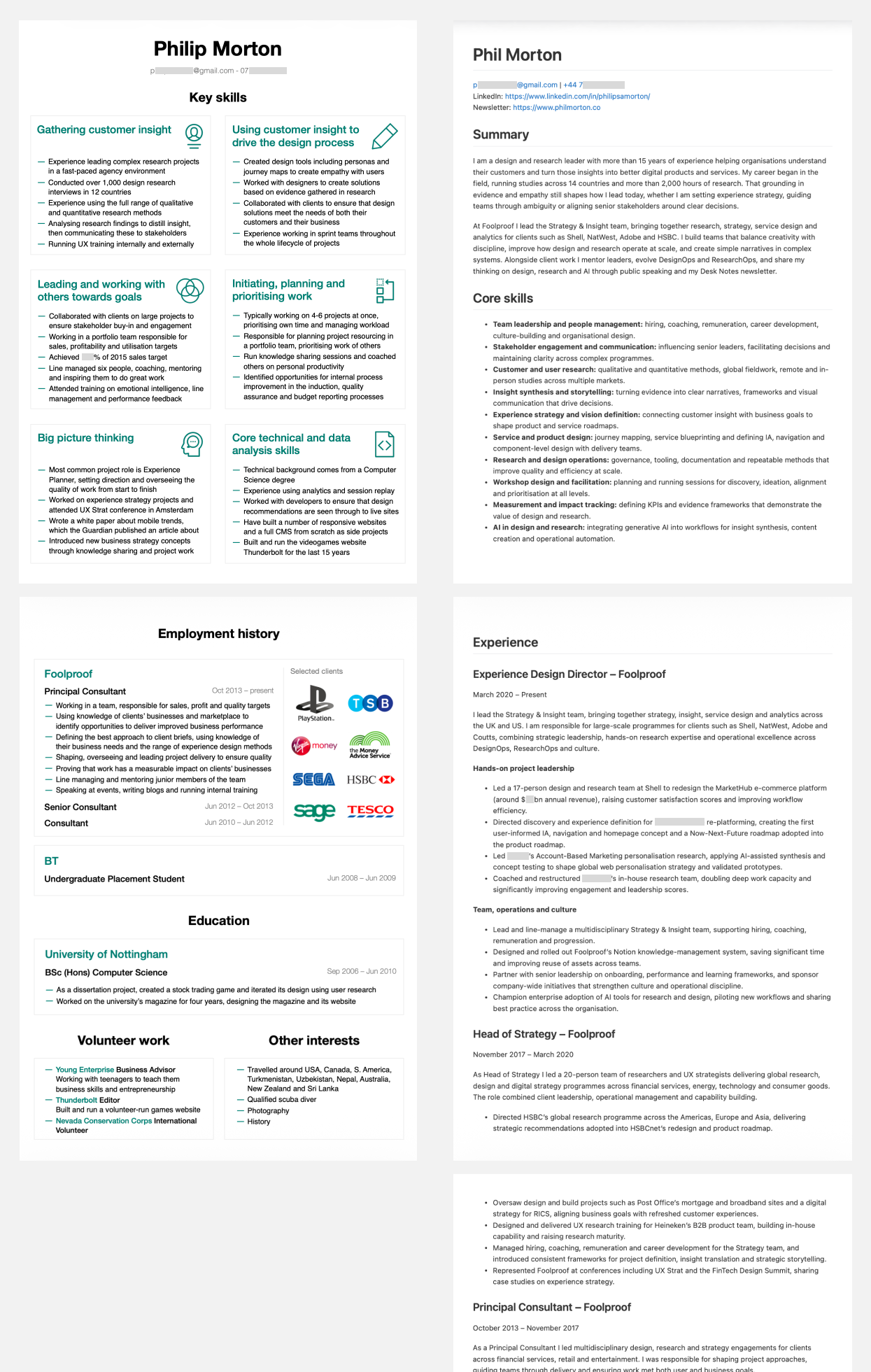 Not long ago, UXers treated their CV like a mini portfolio piece. People put a lot of effort into the visual design, using layout and typography to make it a pleasant to read and easy to scan. They kept things concise – one or two pages maximum – and included visual elements like company logos to add credibility.